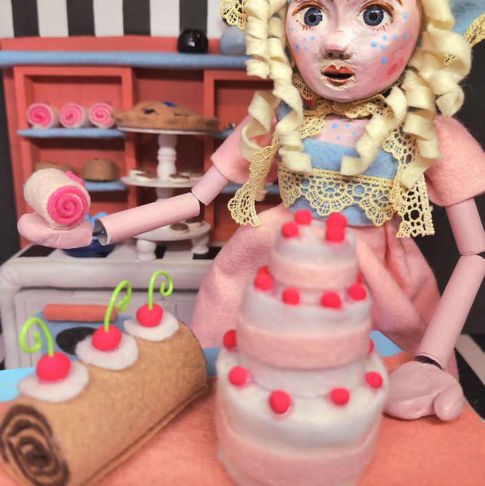 The Pattern People are art dolls that I create from wire, clay, felt, paper, and recycled plastic. Around them I have built a fantasy world full of backgrounds and props. The idea is that I can use these dolls as movable paintings. They can be reconfigured and photographed to create endless pieces of art and tell endless stories.